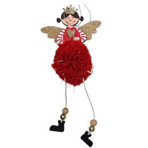 • Στολίδι Ξύλινο Αγγελάκι με Φουντωτή Μπάλα 20x9cm Xmasfest 1134031