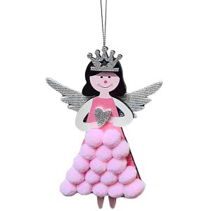 Στολίδι Ξύλινο Αγγελάκι με Φουντίτσες 14x10cm Xmasfest 1134037