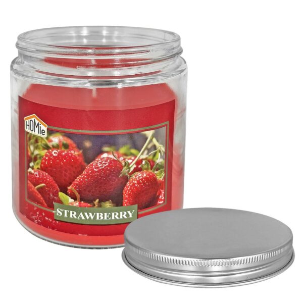 Κερί Φράουλα σε Βάζο Γυάλινο με Καπάκι 10×9,5cm, 545g Gross, 280g net Homie 57502