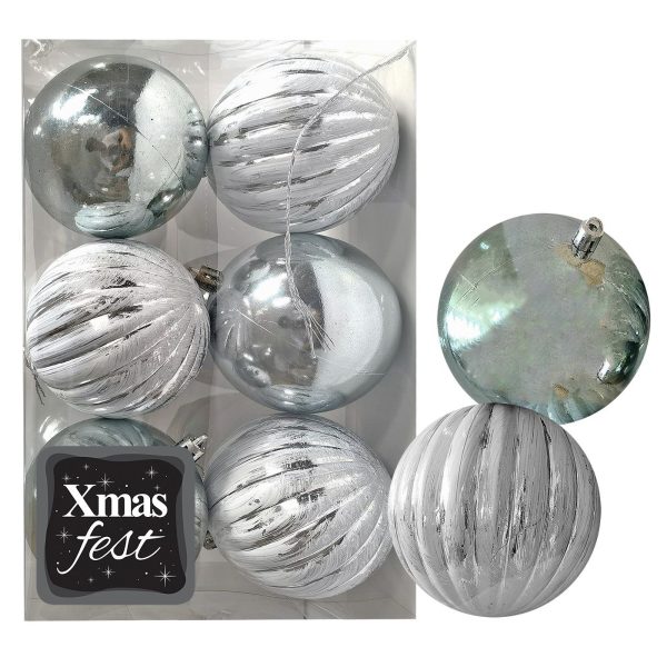 Μπάλες Ανάγλυφες Αντικέ μιξ με Γκριζοπράσινες πακ=6τεμ φ7 ø7cm Xmasfest 1133582