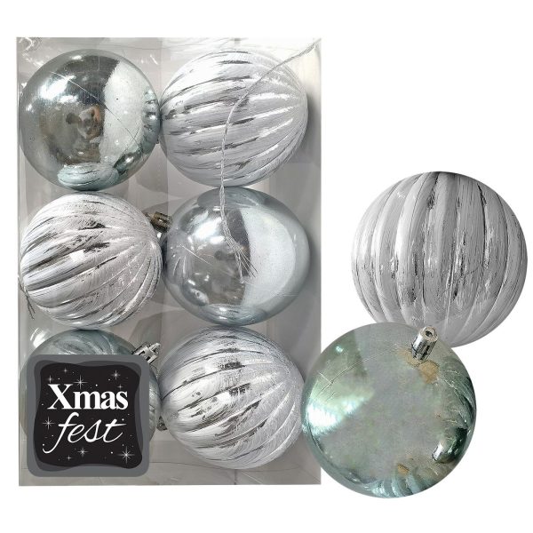 Μπάλες Ανάγλυφες Αντικέ μιξ με Γκριζοπράσινες πακ=6τεμ φ8 ø8cm Xmasfest 1133583