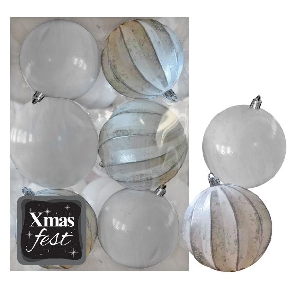 Μπάλες Ανάγλυφες Αντικέ μιξ με Λευκές πακ=6τεμ φ7 ø7cm Xmasfest 1133590