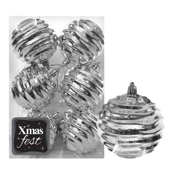 Μπάλες Σμιλεμένες Ασημί πακ=6τεμ φ8 ø8cm Xmasfest 1133578