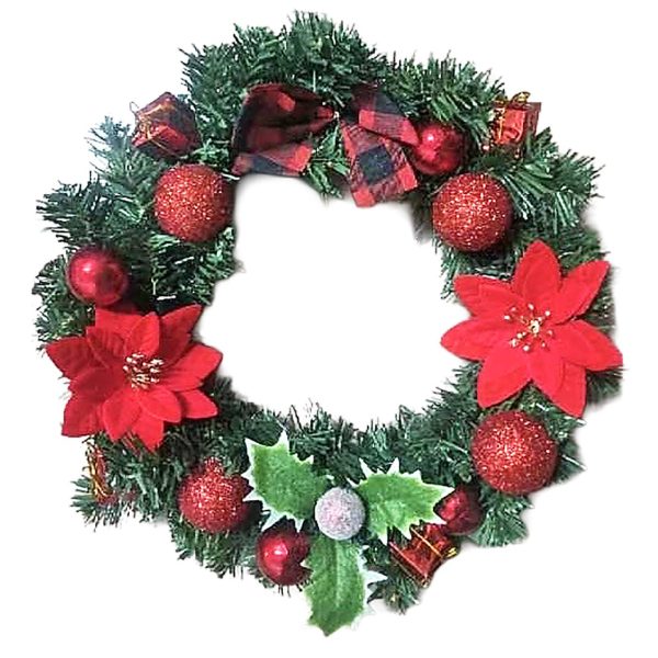 Στεφάνι Κόκκινο με Αλεξανδρινά, Κουκουνάρια ø40cm Xmasfest 11387