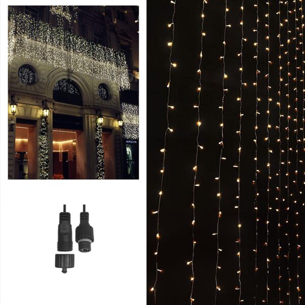 100 led λευκό θερμό κουρτίνα επεκτεινόμενα (σύνδεση max.5 σειρές). Για εξωτερικό & εσωτερικό χώρο. Δεν περιέχεται ο μετασχηματιστής (κωδικός 93-2378) & 3m καλώδιο, σταθερού φωτισμού